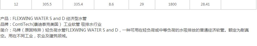 用途:一種可用在輕負荷或中等負荷的水吸排放的普通經濟軟管。額定為耐真空。用在不同工業(yè),農業(yè)及建筑領域。