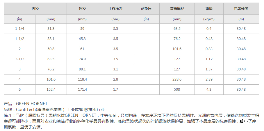 用途:中等負荷,輕質構造,在寒冷環境下仍然保持柔韌性。光滑的管內層,使輸送物質發生積塞得可能降小,而且對農業和清潔行業的多種化學品具有耐性。略微呈波狀起伏的外部螺旋狀保護層,加強了本品表層的抗磨損性,減小了摩擦系數,且便于安裝。本品通常的應用領域包括廢品處理、建筑、農業、海上作業和制造業