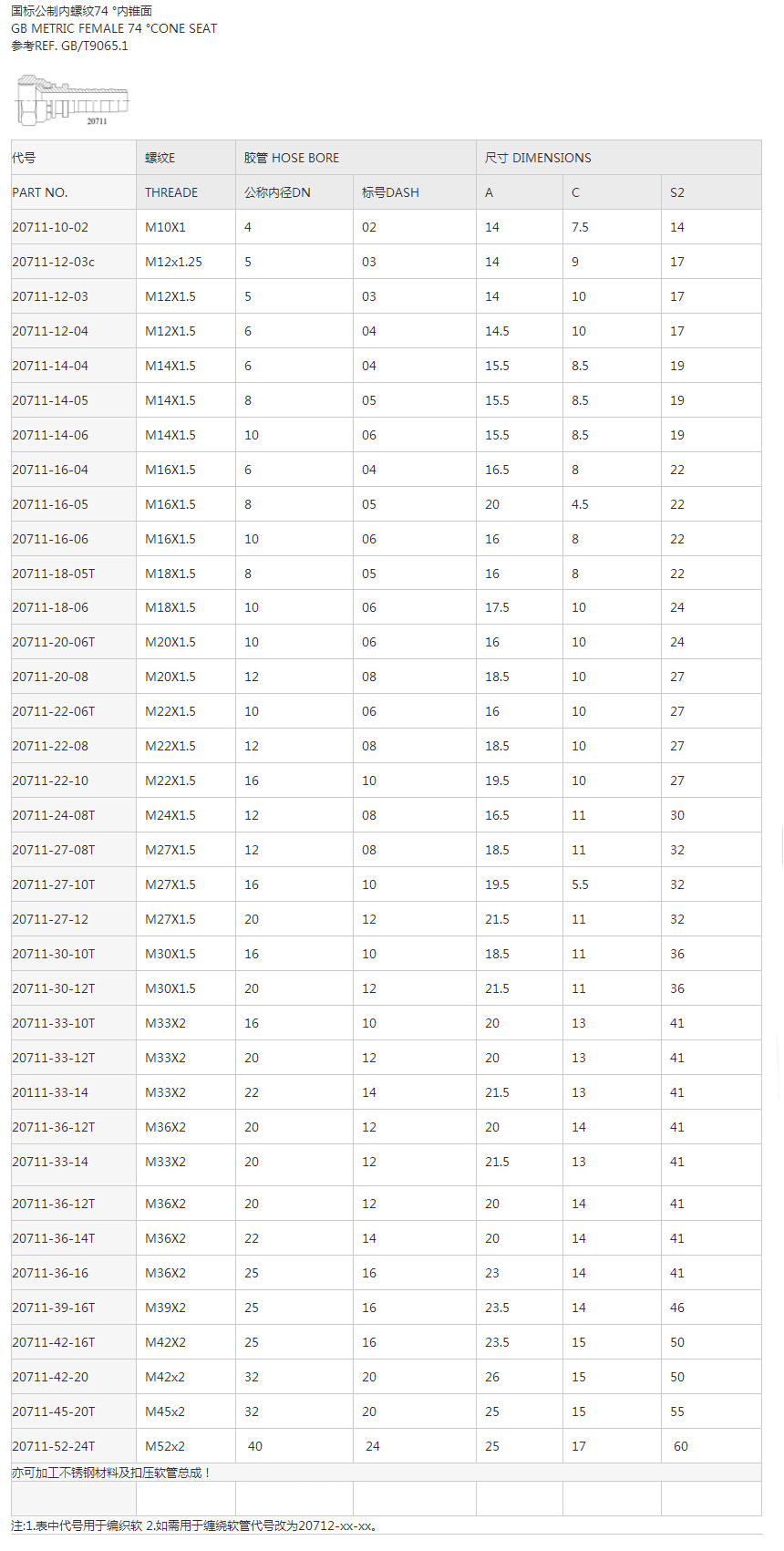20711公制內螺紋74°內錐面
