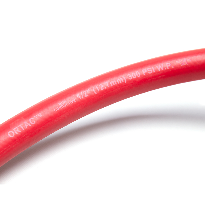 用途:可用于比較惡劣的工業環境,可輸送空氣,油,水,煤油以及化工原料。 不導電,1000伏直流電下每英寸電阻大于1兆歐姆,工作壓力有250psi,300psi,400psi幾個類型,另外,黃色Ortac400