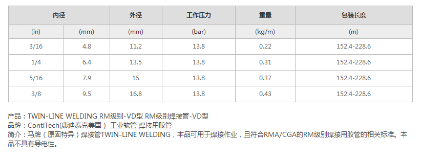 用途:本品可用于焊接作業(yè),且符合RMA/CGA的RM級別焊接用膠管。本品不具有導電性